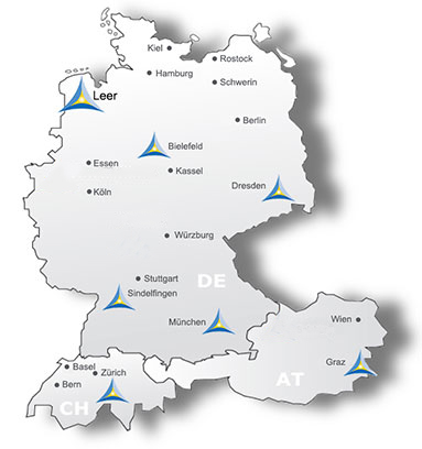 - sieben feste Niederlassungen in Deutschland, Österreich und der Schweiz